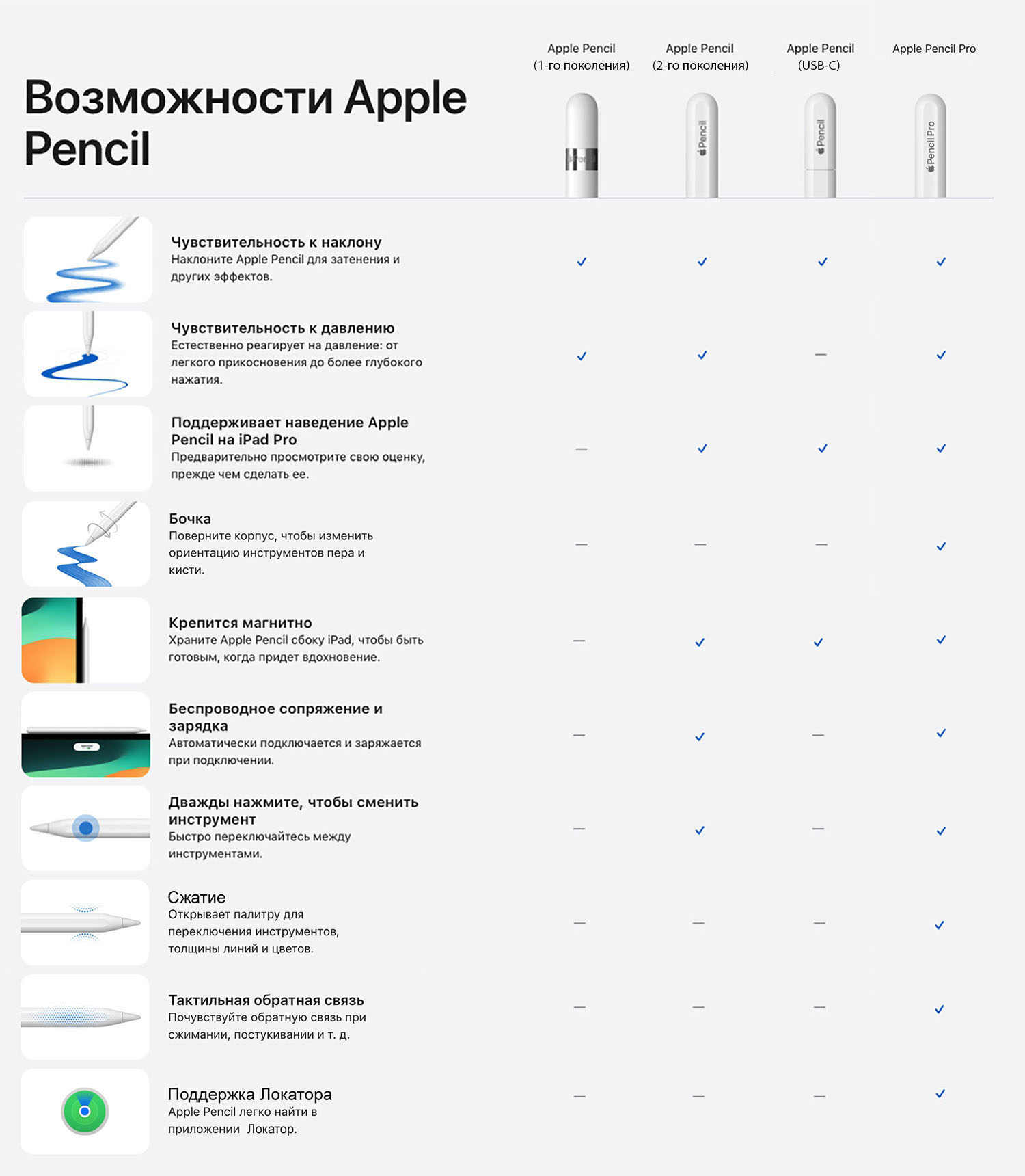 Сейчас у Apple четыре разных стилуса: Apple Pencil 1-го и 2-го поколения, модель с USB‑C и Apple Pencil Pro. И если раньше всё было просто — один карандаш, один iPad — то теперь запутаться стало гораздо легче. Разбираемся, чем отличаются модели и какой подойдёт именно вам.